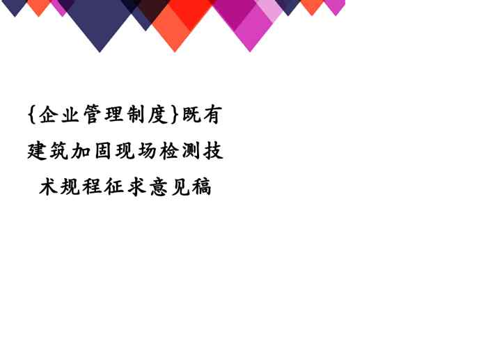 本站资深用户发布了最新的《{企业管理制度}既有建筑加固现场检测技术规程征求意见稿》文档,以下内容为预览,详细内容可下载阅读。 声明:本站所有文章,如无特殊说明或标注,均为本站原创发布。任何个人或组织,在未征得本站同意时,禁止复制、盗用、采集、发布本站内容到任何网站、书籍等各类媒体平台。如若本站内容侵犯了原著者的合法权益,可联系我们进行处理。