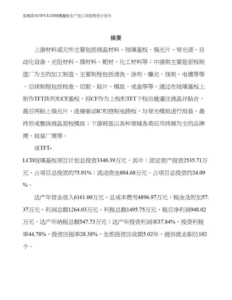 本站正式发布了《TFT-LCD玻璃基板生产加工项目投资计划书》文档,文档详细内容可下载阅读。 声明:本站所有文章,如无特殊说明或标注,均为本站原创发布。任何个人或组织,在未征得本站同意时,禁止复制、盗用、采集、发布本站内容到任何网站、书籍等各类媒体平台。如若本站内容侵犯了原著者的合法权益,可联系我们进行处理。