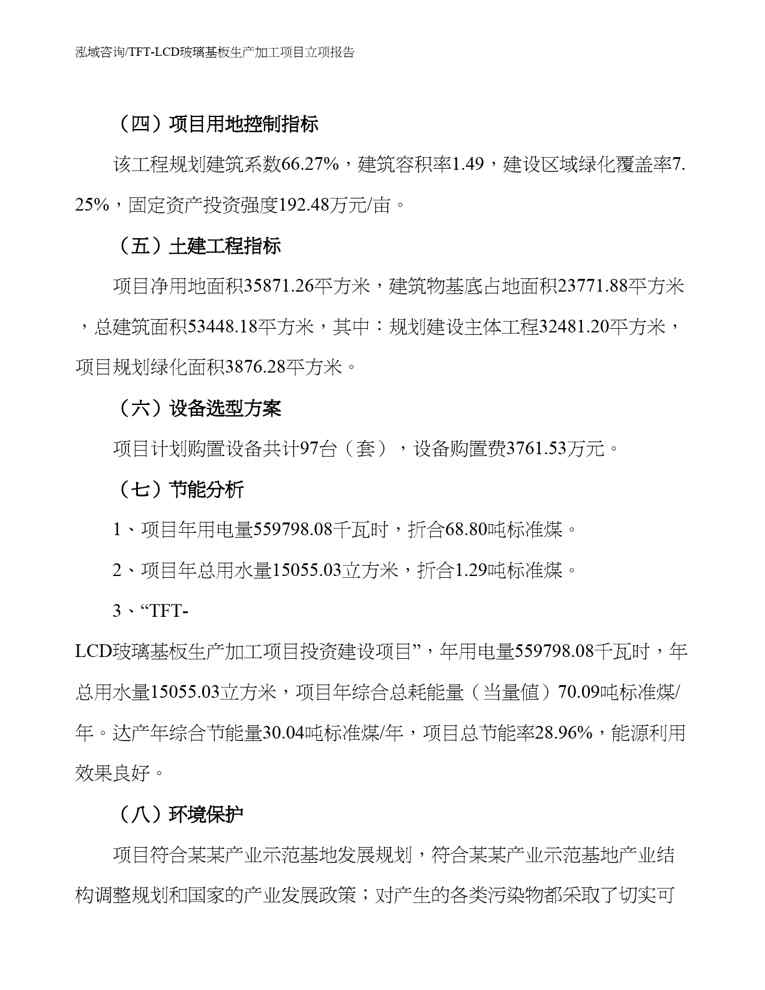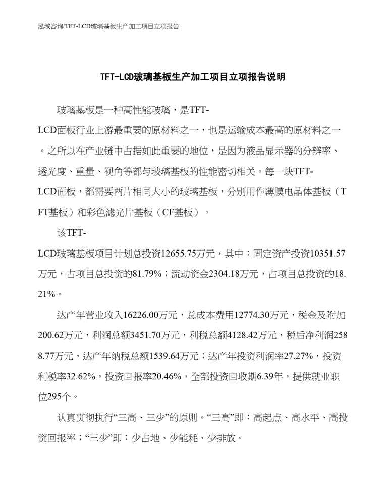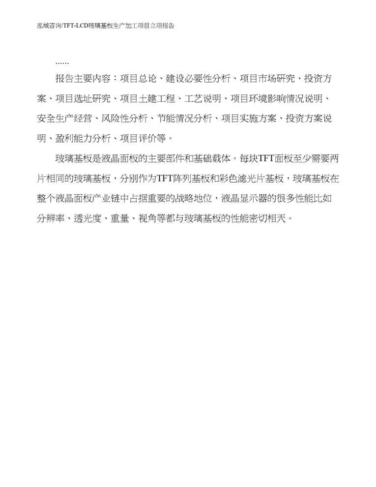 不久前,最新文档《TFT-LCD玻璃基板生产加工项目立项报告》全文正式在本站发布,感兴趣的用户可以下载阅读。 声明:本站所有文章,如无特殊说明或标注,均为本站原创发布。任何个人或组织,在未征得本站同意时,禁止复制、盗用、采集、发布本站内容到任何网站、书籍等各类媒体平台。如若本站内容侵犯了原著者的合法权益,可联系我们进行处理。