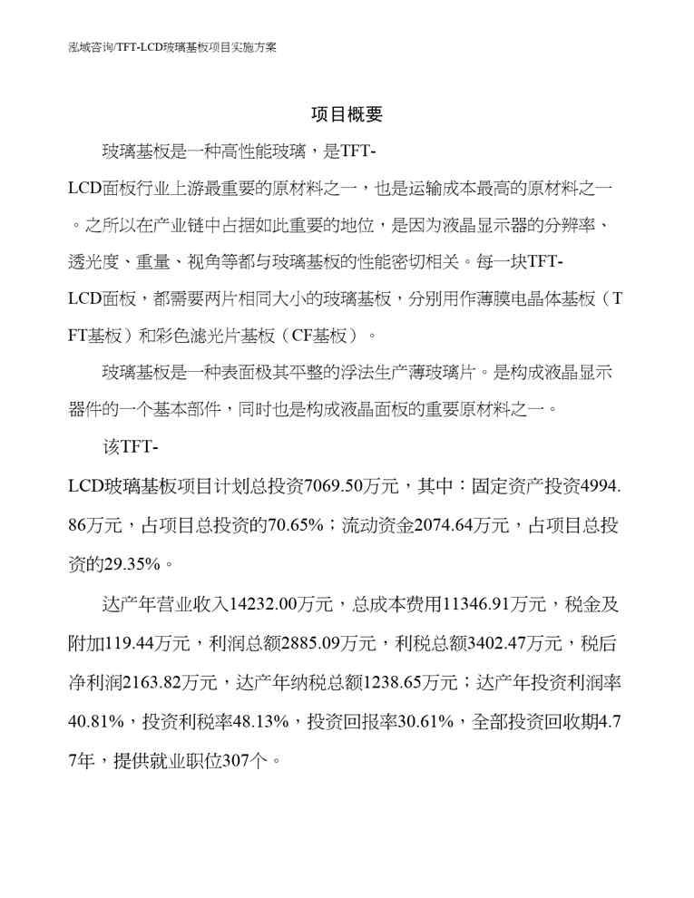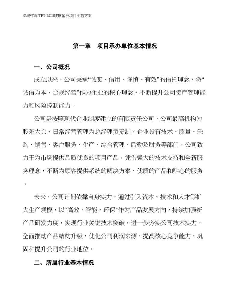 不久前,最新文档《TFT-LCD玻璃基板项目实施方案》全文正式在本站发布,感兴趣的用户可以下载阅读。 声明:本站所有文章,如无特殊说明或标注,均为本站原创发布。任何个人或组织,在未征得本站同意时,禁止复制、盗用、采集、发布本站内容到任何网站、书籍等各类媒体平台。如若本站内容侵犯了原著者的合法权益,可联系我们进行处理。