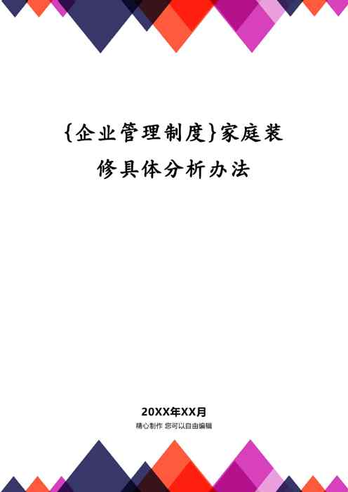 本站资深用户发布了最新的《{企业管理制度}家庭装修具体分析办法》文档,以下内容为预览,详细内容可下载阅读。 声明:本站所有文章,如无特殊说明或标注,均为本站原创发布。任何个人或组织,在未征得本站同意时,禁止复制、盗用、采集、发布本站内容到任何网站、书籍等各类媒体平台。如若本站内容侵犯了原著者的合法权益,可联系我们进行处理。