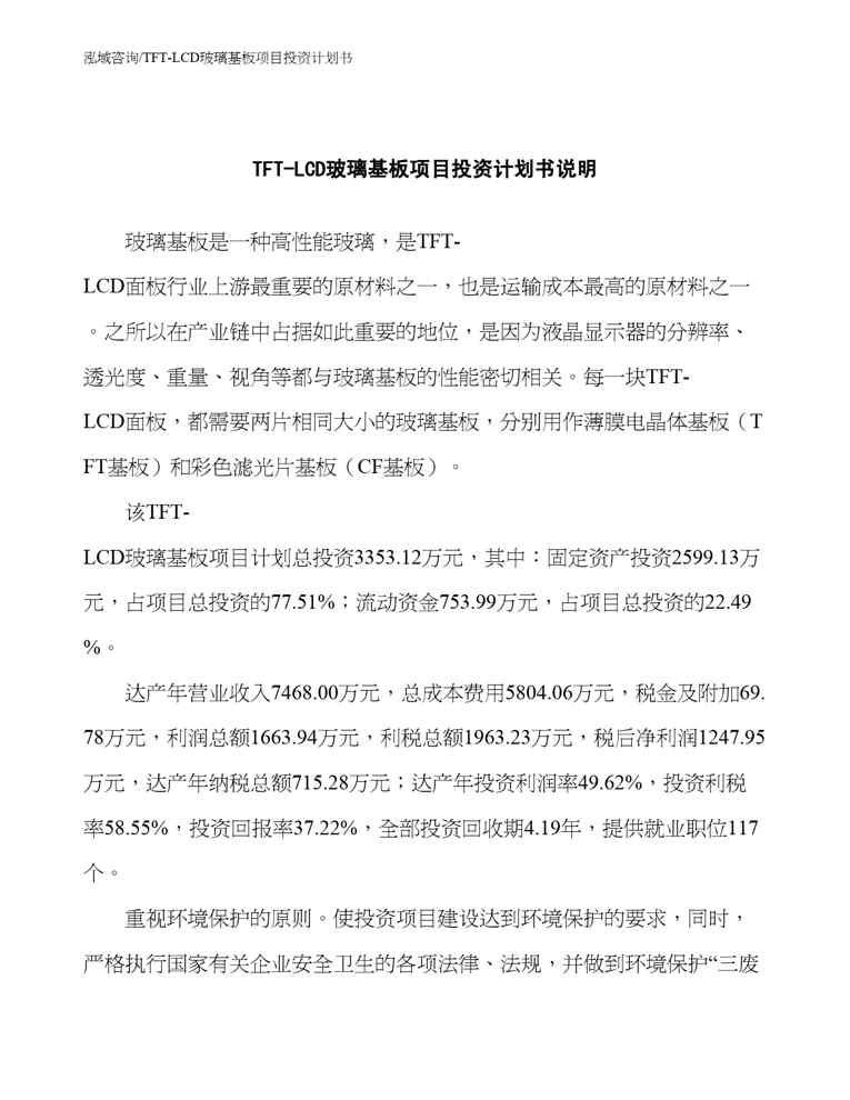 本站资深用户发布了最新的《TFT-LCD玻璃基板项目投资计划书模板》文档,以下内容为预览,详细内容可下载阅读。 声明:本站所有文章,如无特殊说明或标注,均为本站原创发布。任何个人或组织,在未征得本站同意时,禁止复制、盗用、采集、发布本站内容到任何网站、书籍等各类媒体平台。如若本站内容侵犯了原著者的合法权益,可联系我们进行处理。
