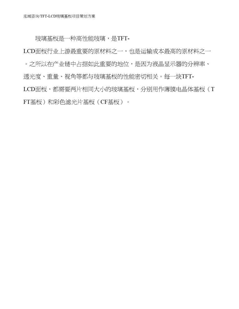 本站资深用户发布了最新的《TFT-LCD玻璃基板项目策划方案》文档,以下内容为预览,详细内容可下载阅读。 声明:本站所有文章,如无特殊说明或标注,均为本站原创发布。任何个人或组织,在未征得本站同意时,禁止复制、盗用、采集、发布本站内容到任何网站、书籍等各类媒体平台。如若本站内容侵犯了原著者的合法权益,可联系我们进行处理。