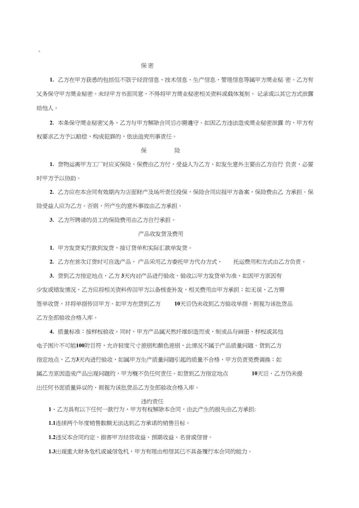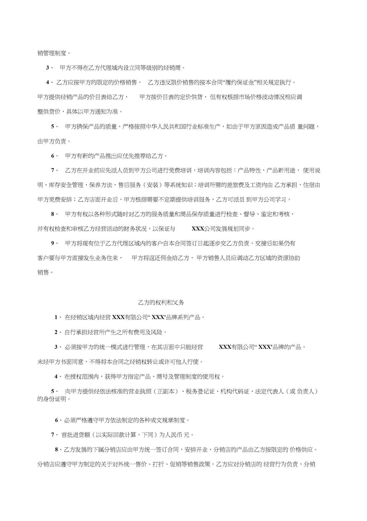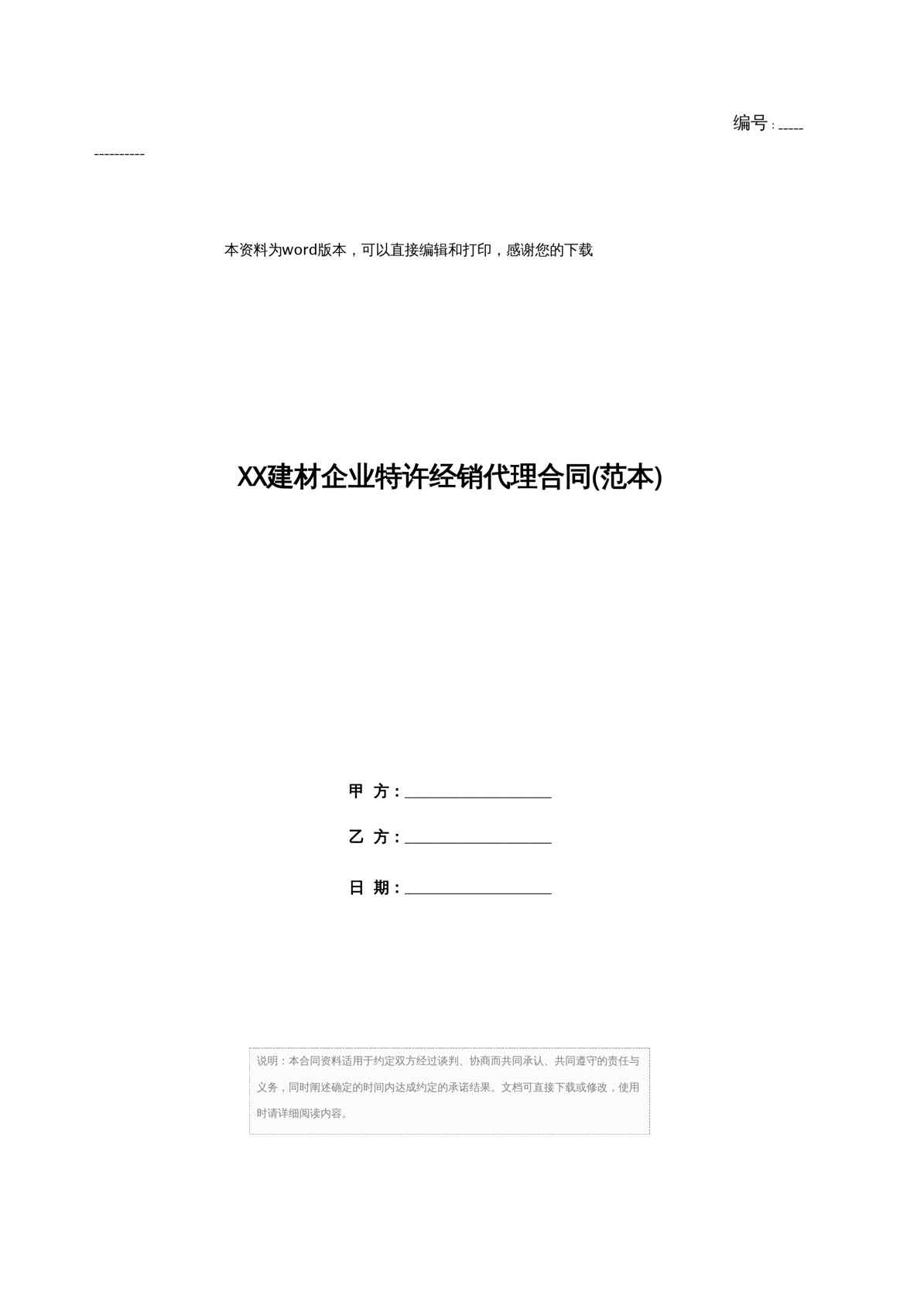 不久前,最新文档《XX建材企业特许经销代理合同(范本)1609149068》全文正式在本站发布,感兴趣的用户可以下载阅读。 声明:本站所有文章,如无特殊说明或标注,均为本站原创发布。任何个人或组织,在未征得本站同意时,禁止复制、盗用、采集、发布本站内容到任何网站、书籍等各类媒体平台。如若本站内容侵犯了原著者的合法权益,可联系我们进行处理。