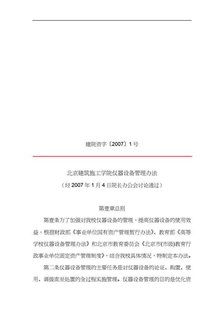 本站资深用户发布了最新的《_制度管控要求_–北京建筑工程学院仪器设备管理办法.doc》文档,以下内容为预览,详细内容可下载阅读。 声明:本站所有文章,如无特殊说明或标注,均为本站原创发布。任何个人或组织,在未征得本站同意时,禁止复制、盗用、采集、发布本站内容到任何网站、书籍等各类媒体平台。如若本站内容侵犯了原著者的合法权益,可联系我们进行处理。