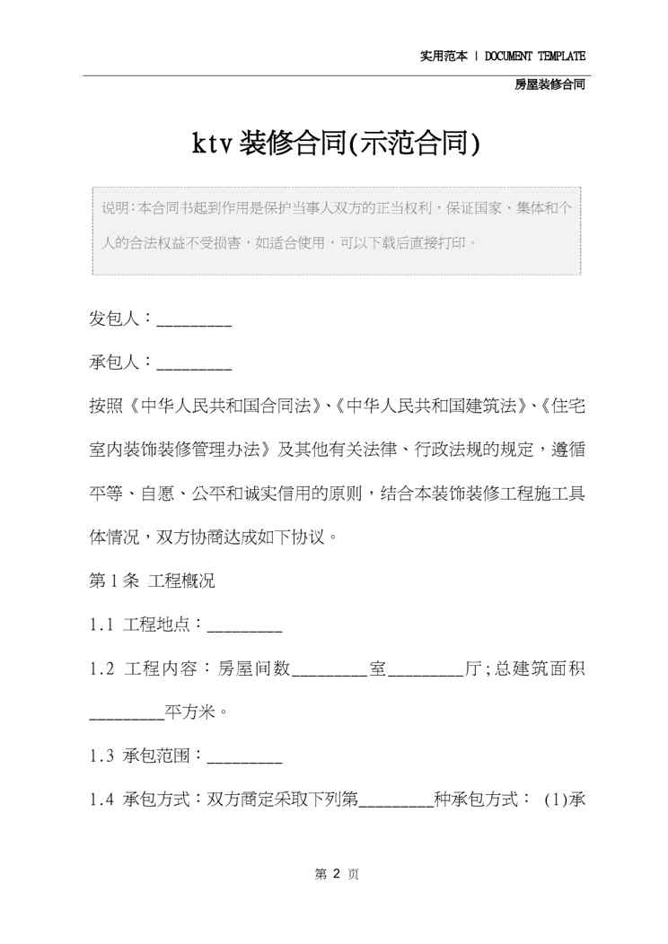 本站资深用户发布了最新的《ktv装修合同详细版》文档,以下内容为预览,详细内容可下载阅读。 声明:本站所有文章,如无特殊说明或标注,均为本站原创发布。任何个人或组织,在未征得本站同意时,禁止复制、盗用、采集、发布本站内容到任何网站、书籍等各类媒体平台。如若本站内容侵犯了原著者的合法权益,可联系我们进行处理。