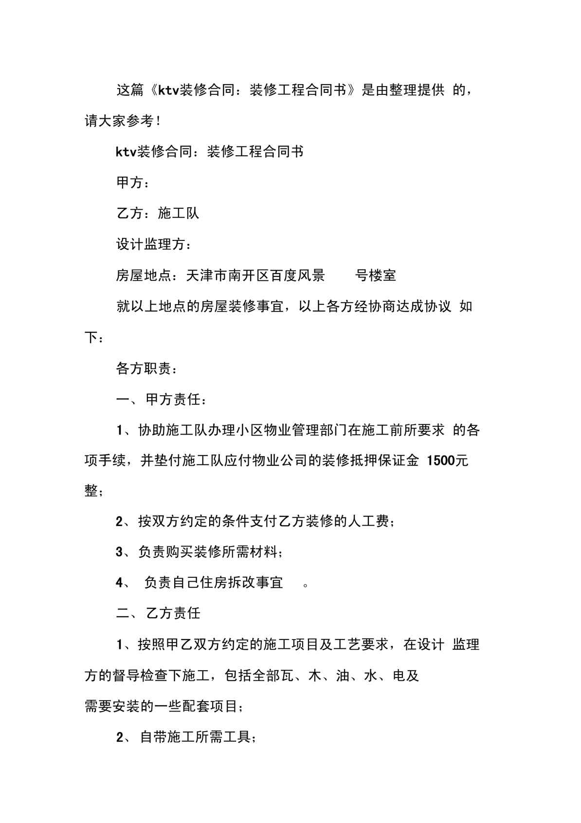 不久前,最新文档《ktv装修合同:装修工程合同书》全文正式在本站发布,感兴趣的用户可以下载阅读。 声明:本站所有文章,如无特殊说明或标注,均为本站原创发布。任何个人或组织,在未征得本站同意时,禁止复制、盗用、采集、发布本站内容到任何网站、书籍等各类媒体平台。如若本站内容侵犯了原著者的合法权益,可联系我们进行处理。