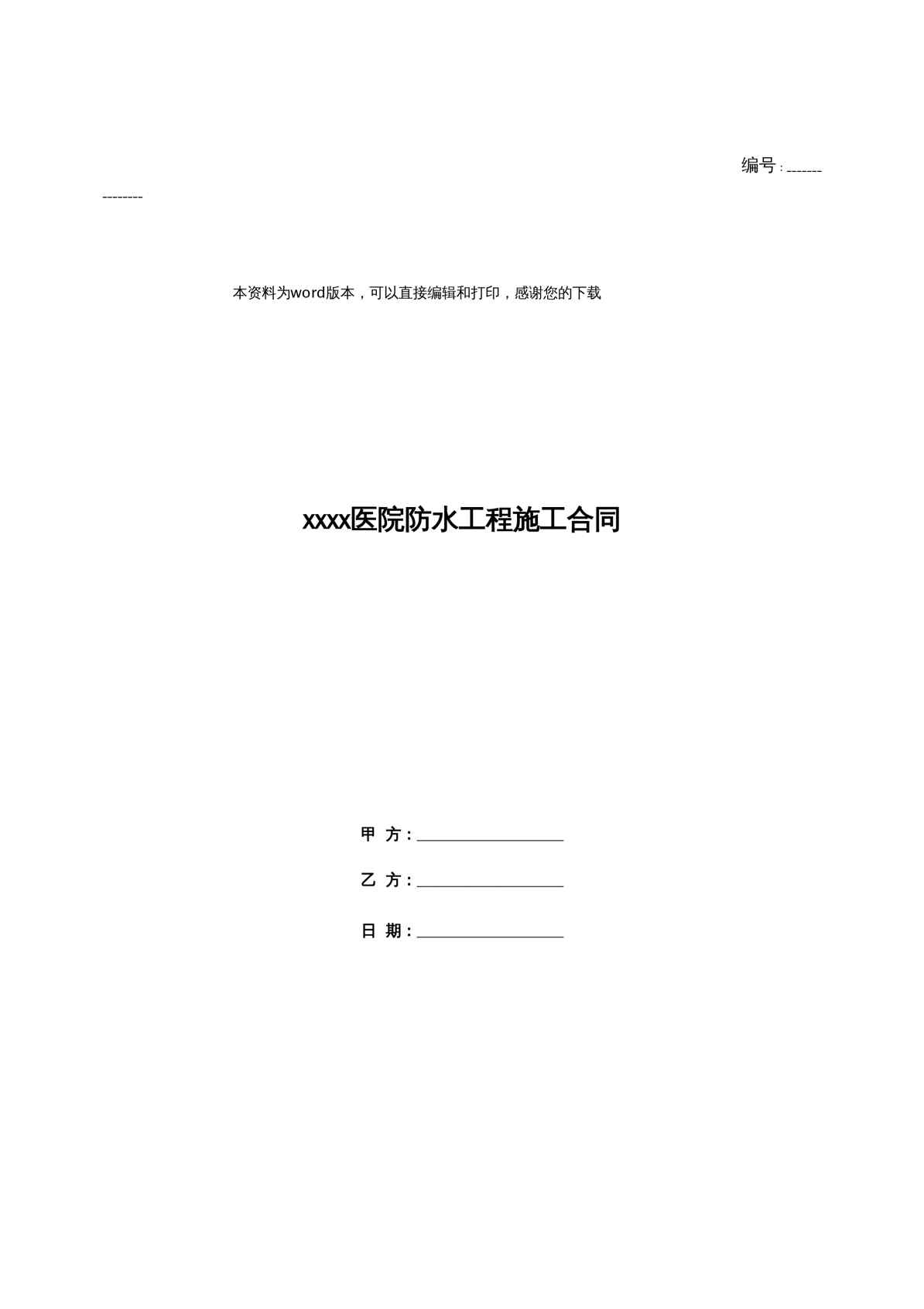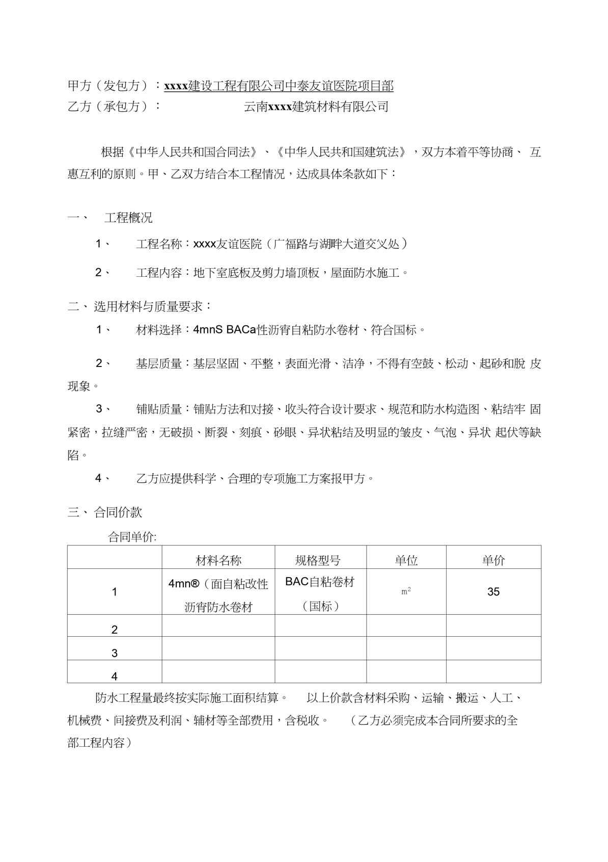本站正式发布了《xxxx医院防水工程施工合同》文档,文档详细内容可下载阅读。 声明:本站所有文章,如无特殊说明或标注,均为本站原创发布。任何个人或组织,在未征得本站同意时,禁止复制、盗用、采集、发布本站内容到任何网站、书籍等各类媒体平台。如若本站内容侵犯了原著者的合法权益,可联系我们进行处理。