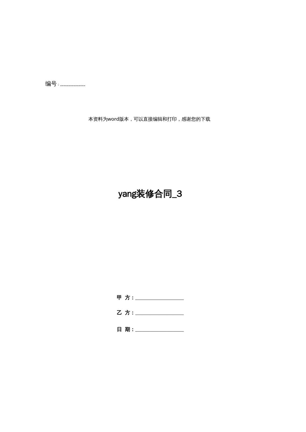 不久前,最新文档《yang装修合同_3》全文正式在本站发布,感兴趣的用户可以下载阅读。 声明:本站所有文章,如无特殊说明或标注,均为本站原创发布。任何个人或组织,在未征得本站同意时,禁止复制、盗用、采集、发布本站内容到任何网站、书籍等各类媒体平台。如若本站内容侵犯了原著者的合法权益,可联系我们进行处理。