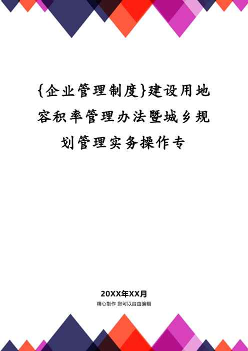 本站正式发布了《{企业管理制度}建设用地容积率管理办法暨城乡规划管理实务操作专》文档,文档详细内容可下载阅读。 声明:本站所有文章,如无特殊说明或标注,均为本站原创发布。任何个人或组织,在未征得本站同意时,禁止复制、盗用、采集、发布本站内容到任何网站、书籍等各类媒体平台。如若本站内容侵犯了原著者的合法权益,可联系我们进行处理。