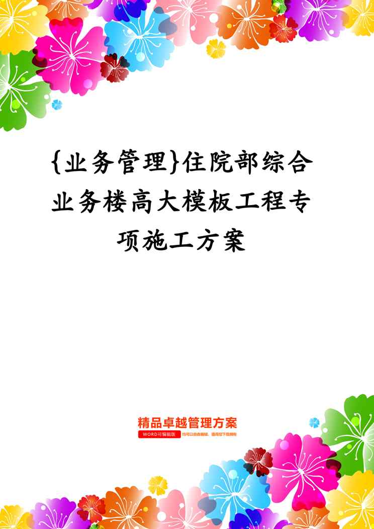 本站资深用户发布了最新的《{业务管理}住院部综合业务楼高大模板工程专项施工方案》文档,以下内容为预览,详细内容可下载阅读。 声明:本站所有文章,如无特殊说明或标注,均为本站原创发布。任何个人或组织,在未征得本站同意时,禁止复制、盗用、采集、发布本站内容到任何网站、书籍等各类媒体平台。如若本站内容侵犯了原著者的合法权益,可联系我们进行处理。