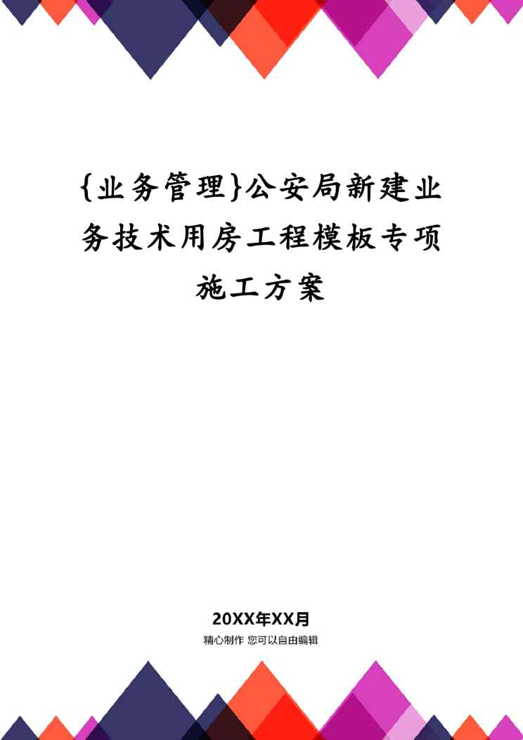 本站正式发布了《{业务管理}公安局新建业务技术用房工程模板专项施工方案1609151264》文档,文档详细内容可下载阅读。 声明:本站所有文章,如无特殊说明或标注,均为本站原创发布。任何个人或组织,在未征得本站同意时,禁止复制、盗用、采集、发布本站内容到任何网站、书籍等各类媒体平台。如若本站内容侵犯了原著者的合法权益,可联系我们进行处理。