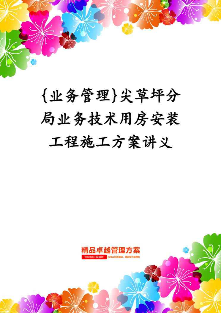 不久前,最新文档《{业务管理}尖草坪分局业务技术用房安装工程施工方案讲义》全文正式在本站发布,感兴趣的用户可以下载阅读。 声明:本站所有文章,如无特殊说明或标注,均为本站原创发布。任何个人或组织,在未征得本站同意时,禁止复制、盗用、采集、发布本站内容到任何网站、书籍等各类媒体平台。如若本站内容侵犯了原著者的合法权益,可联系我们进行处理。