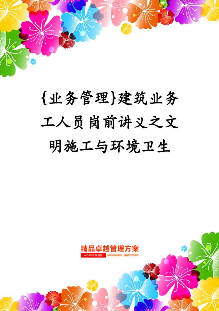 本站正式发布了《{业务管理}建筑业务工人员岗前讲义之文明施工与环境卫生》文档,文档详细内容可下载阅读。 声明:本站所有文章,如无特殊说明或标注,均为本站原创发布。任何个人或组织,在未征得本站同意时,禁止复制、盗用、采集、发布本站内容到任何网站、书籍等各类媒体平台。如若本站内容侵犯了原著者的合法权益,可联系我们进行处理。