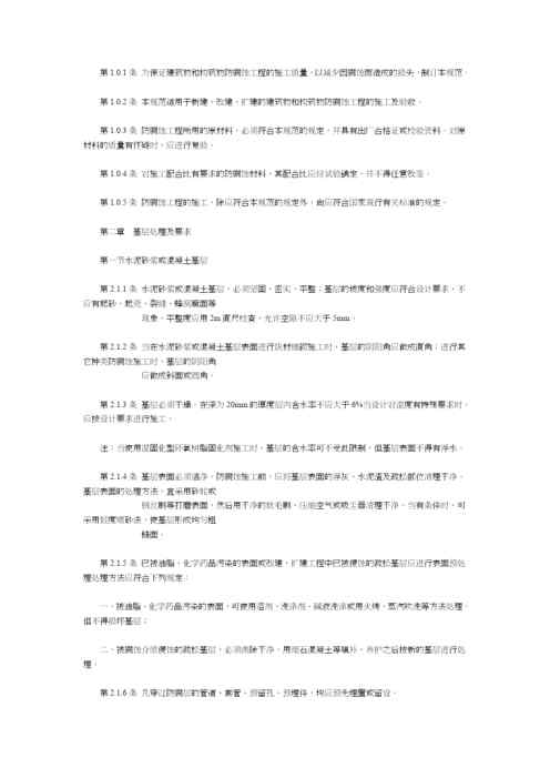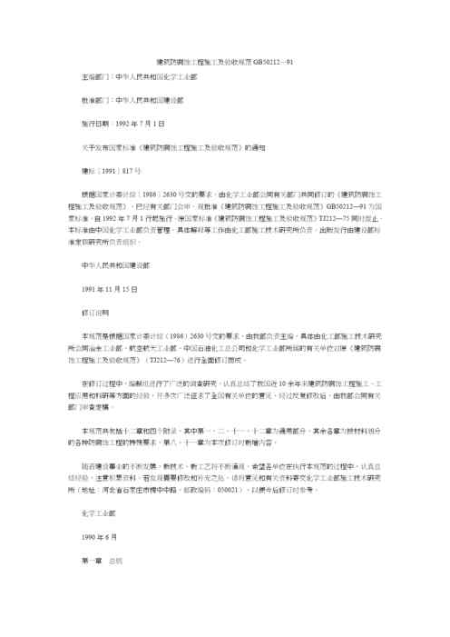 本站资深用户发布了最新的《{企业管理制度}建筑防腐蚀工程施工及验收规范范本》文档,以下内容为预览,详细内容可下载阅读。 声明:本站所有文章,如无特殊说明或标注,均为本站原创发布。任何个人或组织,在未征得本站同意时,禁止复制、盗用、采集、发布本站内容到任何网站、书籍等各类媒体平台。如若本站内容侵犯了原著者的合法权益,可联系我们进行处理。