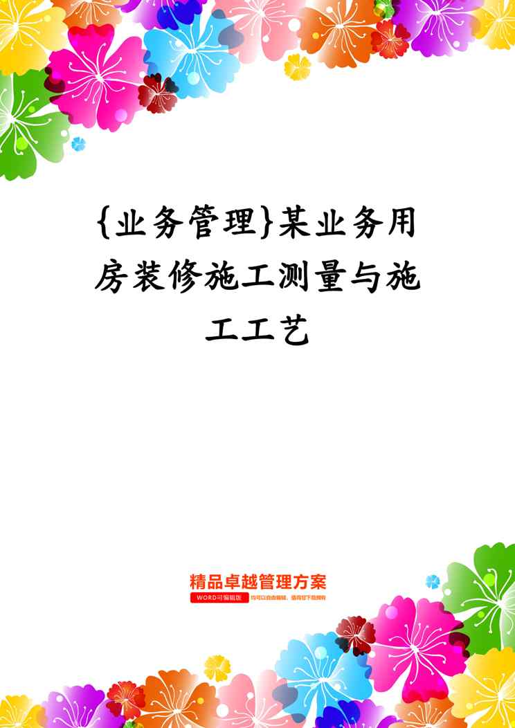 本站正式发布了《{业务管理}某业务用房装修施工测量与施工工艺》文档,文档详细内容可下载阅读。 声明:本站所有文章,如无特殊说明或标注,均为本站原创发布。任何个人或组织,在未征得本站同意时,禁止复制、盗用、采集、发布本站内容到任何网站、书籍等各类媒体平台。如若本站内容侵犯了原著者的合法权益,可联系我们进行处理。