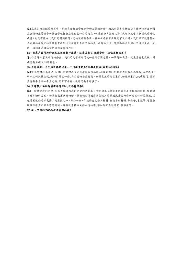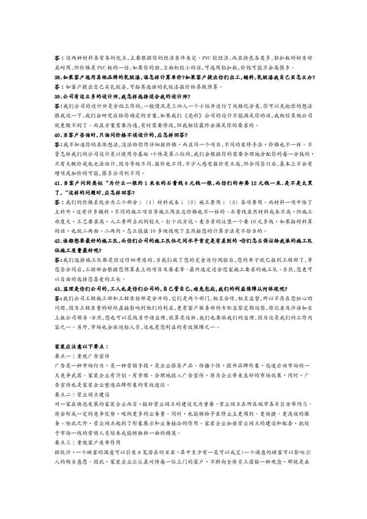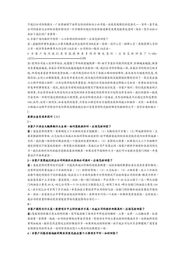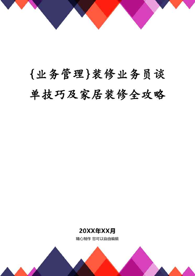 本站资深用户发布了最新的《{业务管理}装修业务员谈单技巧及家居装修全攻略》文档,以下内容为预览,详细内容可下载阅读。 声明:本站所有文章,如无特殊说明或标注,均为本站原创发布。任何个人或组织,在未征得本站同意时,禁止复制、盗用、采集、发布本站内容到任何网站、书籍等各类媒体平台。如若本站内容侵犯了原著者的合法权益,可联系我们进行处理。