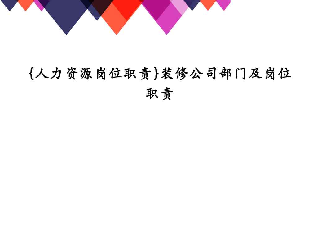 不久前,最新文档《{人力资源岗位职责}装修公司部门及岗位职责》全文正式在本站发布,感兴趣的用户可以下载阅读。 声明:本站所有文章,如无特殊说明或标注,均为本站原创发布。任何个人或组织,在未征得本站同意时,禁止复制、盗用、采集、发布本站内容到任何网站、书籍等各类媒体平台。如若本站内容侵犯了原著者的合法权益,可联系我们进行处理。