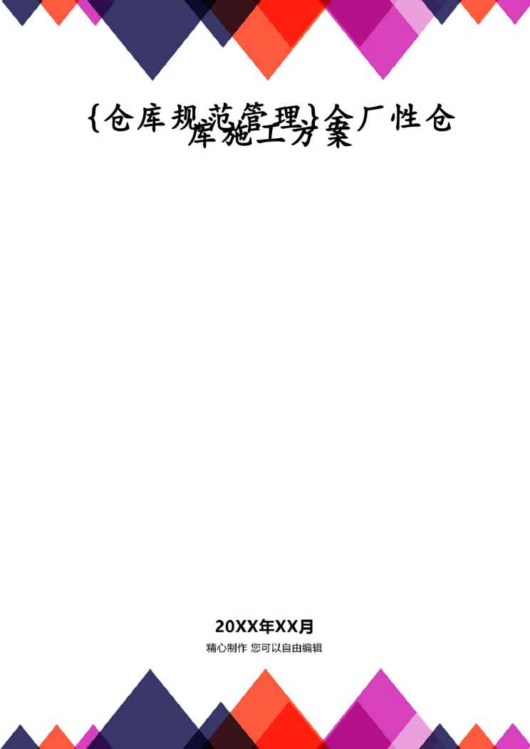 不久前,最新文档《{仓库规范管理}全厂性仓库施工方案》全文正式在本站发布,感兴趣的用户可以下载阅读。 声明:本站所有文章,如无特殊说明或标注,均为本站原创发布。任何个人或组织,在未征得本站同意时,禁止复制、盗用、采集、发布本站内容到任何网站、书籍等各类媒体平台。如若本站内容侵犯了原著者的合法权益,可联系我们进行处理。