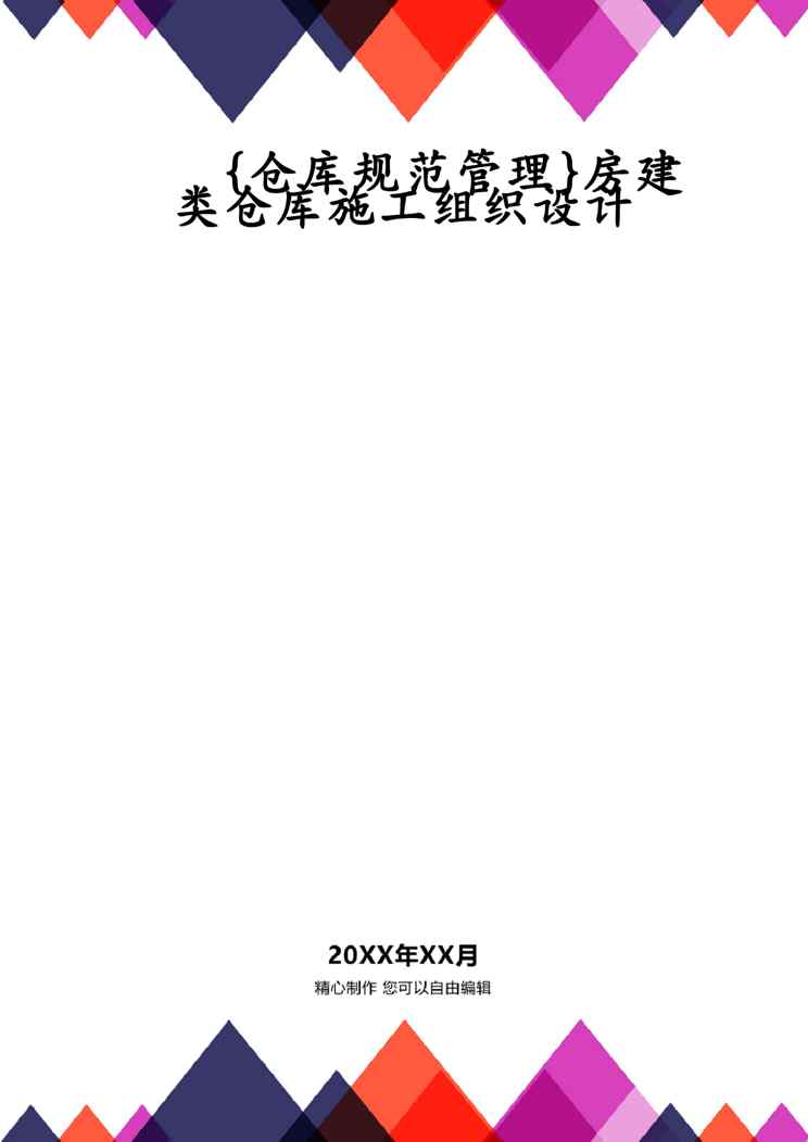 本站资深用户发布了最新的《{仓库规范管理}房建类仓库施工组织设计》文档,以下内容为预览,详细内容可下载阅读。 声明:本站所有文章,如无特殊说明或标注,均为本站原创发布。任何个人或组织,在未征得本站同意时,禁止复制、盗用、采集、发布本站内容到任何网站、书籍等各类媒体平台。如若本站内容侵犯了原著者的合法权益,可联系我们进行处理。