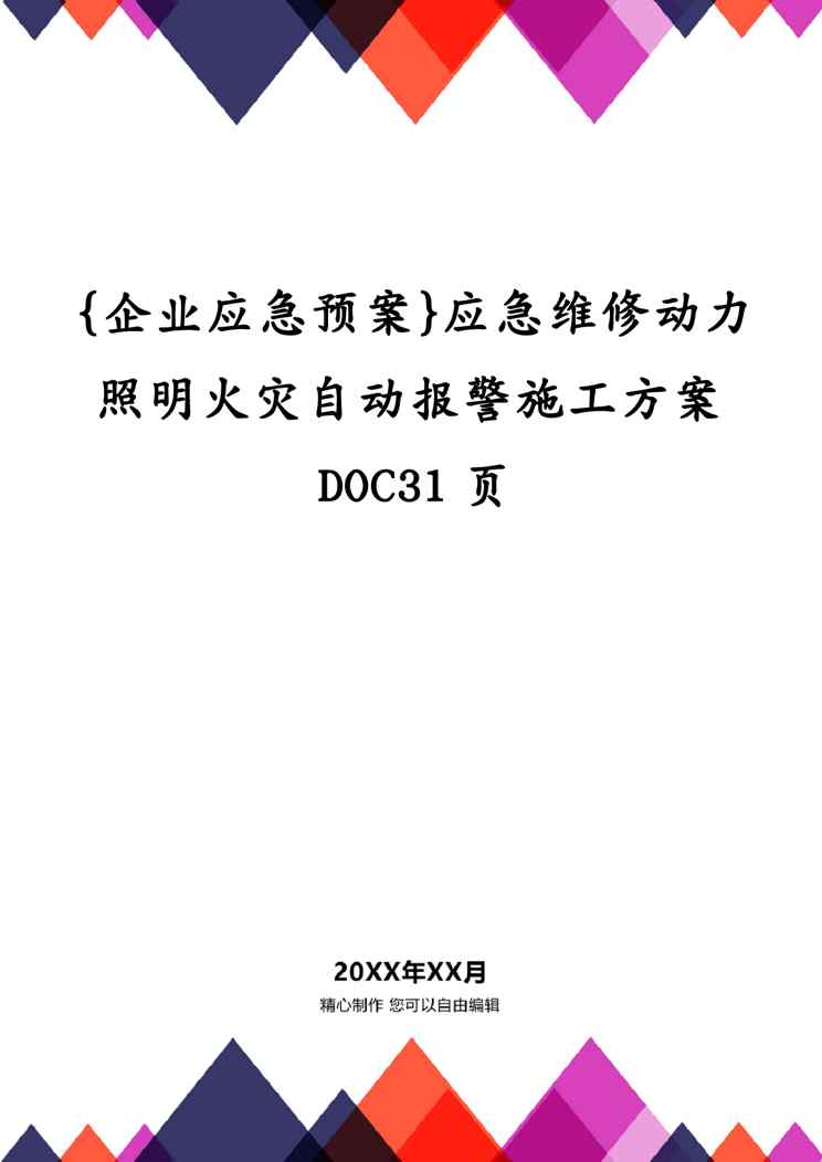 本站正式发布了《{企业应急预案}应急维修动力照明火灾自动报警施工方案DOC31页》文档,文档详细内容可下载阅读。 声明:本站所有文章,如无特殊说明或标注,均为本站原创发布。任何个人或组织,在未征得本站同意时,禁止复制、盗用、采集、发布本站内容到任何网站、书籍等各类媒体平台。如若本站内容侵犯了原著者的合法权益,可联系我们进行处理。