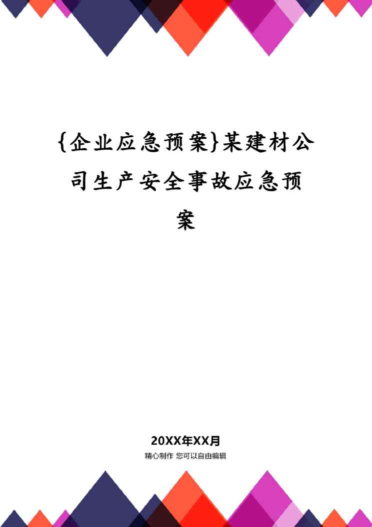 不久前,最新文档《{企业应急预案}某建材公司生产安全事故应急预案》全文正式在本站发布,感兴趣的用户可以下载阅读。 声明:本站所有文章,如无特殊说明或标注,均为本站原创发布。任何个人或组织,在未征得本站同意时,禁止复制、盗用、采集、发布本站内容到任何网站、书籍等各类媒体平台。如若本站内容侵犯了原著者的合法权益,可联系我们进行处理。