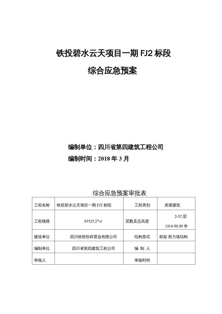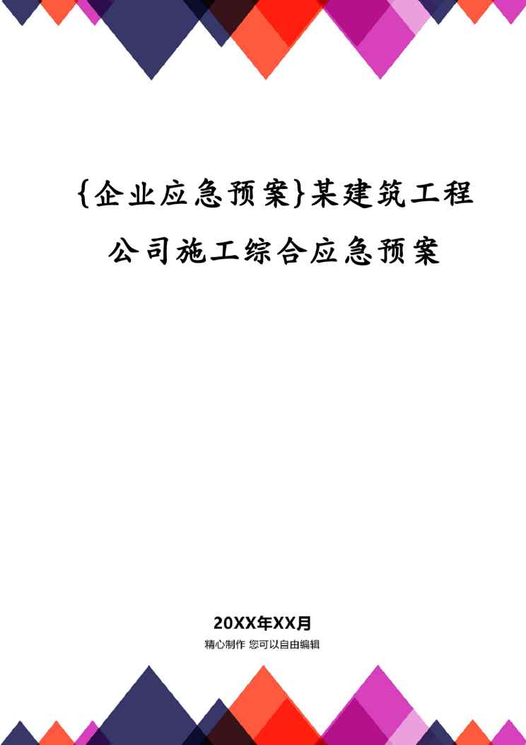 不久前,最新文档《{企业应急预案}某建筑工程公司施工综合应急预案》全文正式在本站发布,感兴趣的用户可以下载阅读。 声明:本站所有文章,如无特殊说明或标注,均为本站原创发布。任何个人或组织,在未征得本站同意时,禁止复制、盗用、采集、发布本站内容到任何网站、书籍等各类媒体平台。如若本站内容侵犯了原著者的合法权益,可联系我们进行处理。