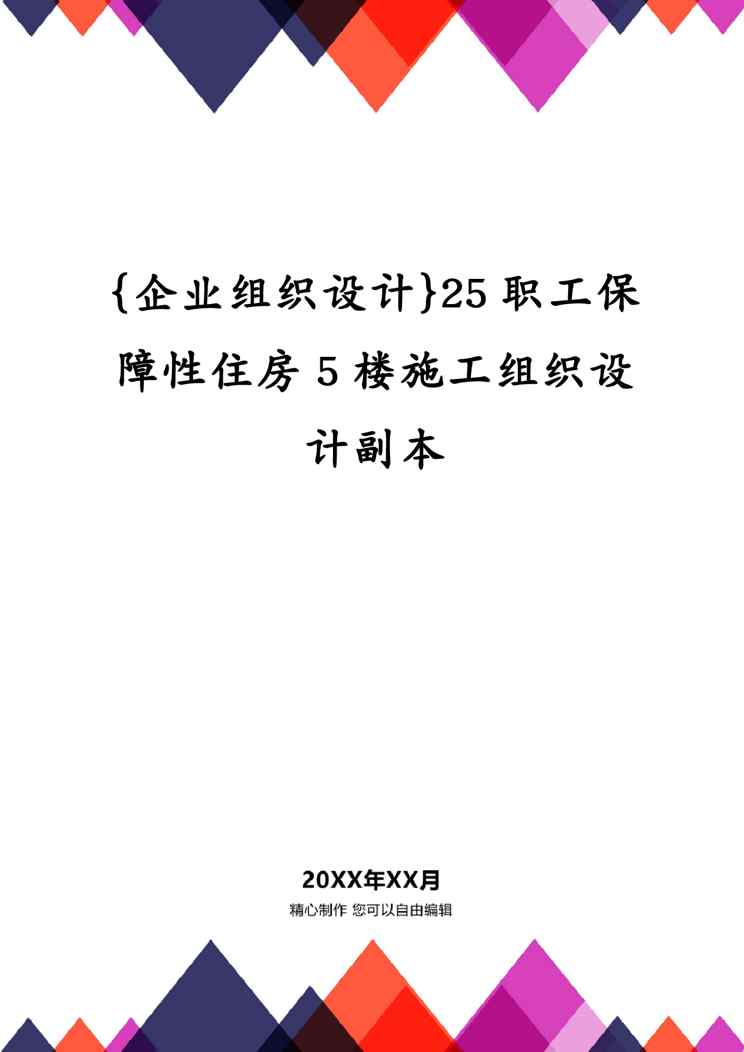 本站正式发布了《{企业组织设计}25职工保障性住房5楼施工组织设计副本》文档,文档详细内容可下载阅读。 声明:本站所有文章,如无特殊说明或标注,均为本站原创发布。任何个人或组织,在未征得本站同意时,禁止复制、盗用、采集、发布本站内容到任何网站、书籍等各类媒体平台。如若本站内容侵犯了原著者的合法权益,可联系我们进行处理。