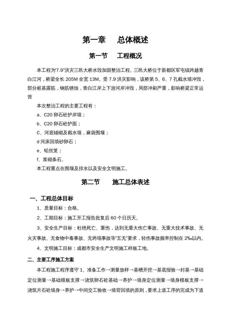 本站资深用户发布了最新的《{企业组织设计}79洪灾水毁加固整治施工组织设计》文档,以下内容为预览,详细内容可下载阅读。 声明:本站所有文章,如无特殊说明或标注,均为本站原创发布。任何个人或组织,在未征得本站同意时,禁止复制、盗用、采集、发布本站内容到任何网站、书籍等各类媒体平台。如若本站内容侵犯了原著者的合法权益,可联系我们进行处理。