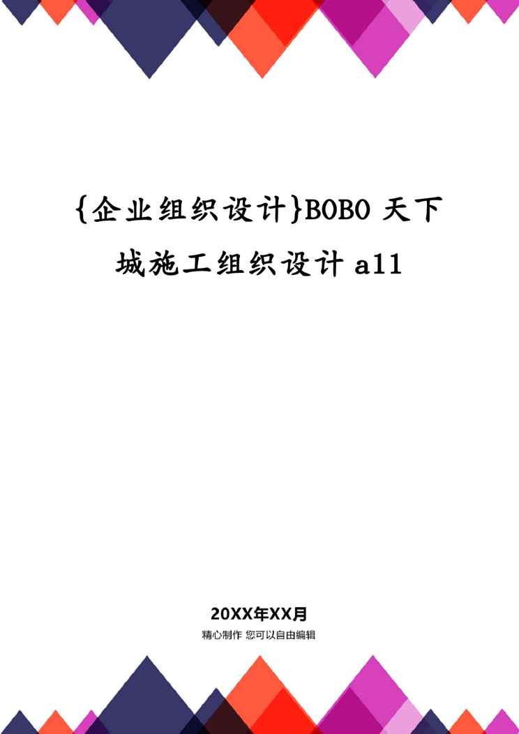不久前,最新文档《{企业组织设计}BOBO天下城施工组织设计all》全文正式在本站发布,感兴趣的用户可以下载阅读。 声明:本站所有文章,如无特殊说明或标注,均为本站原创发布。任何个人或组织,在未征得本站同意时,禁止复制、盗用、采集、发布本站内容到任何网站、书籍等各类媒体平台。如若本站内容侵犯了原著者的合法权益,可联系我们进行处理。