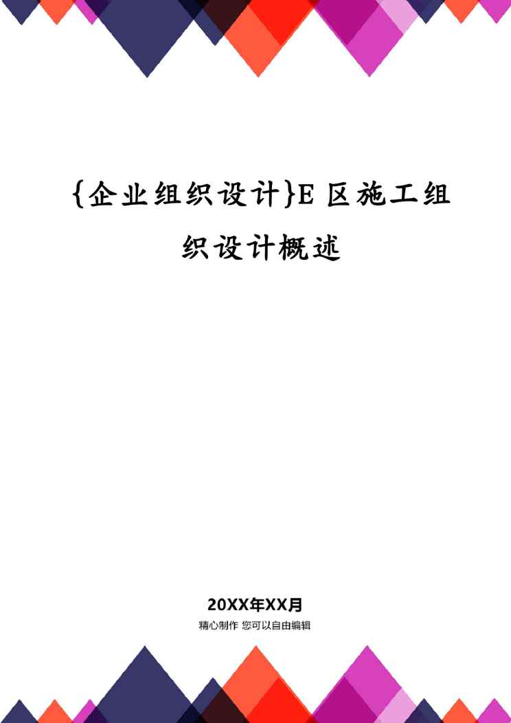 本站正式发布了《{企业组织设计}E区施工组织设计概述》文档,文档详细内容可下载阅读。 声明:本站所有文章,如无特殊说明或标注,均为本站原创发布。任何个人或组织,在未征得本站同意时,禁止复制、盗用、采集、发布本站内容到任何网站、书籍等各类媒体平台。如若本站内容侵犯了原著者的合法权益,可联系我们进行处理。