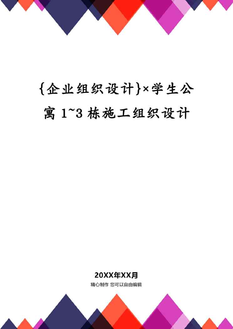 不久前,最新文档《{企业组织设计}×学生公寓1~3栋施工组织设计》全文正式在本站发布,感兴趣的用户可以下载阅读。 声明:本站所有文章,如无特殊说明或标注,均为本站原创发布。任何个人或组织,在未征得本站同意时,禁止复制、盗用、采集、发布本站内容到任何网站、书籍等各类媒体平台。如若本站内容侵犯了原著者的合法权益,可联系我们进行处理。