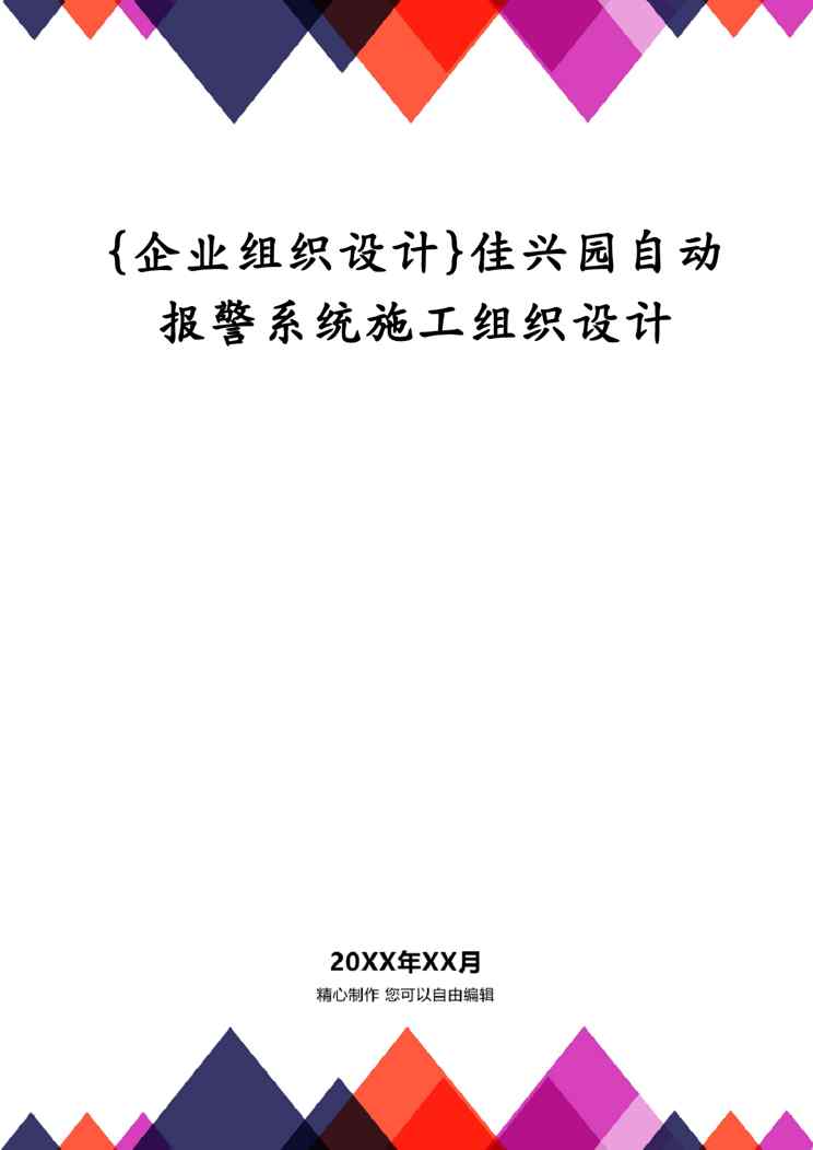 本站资深用户发布了最新的《{企业组织设计}佳兴园自动报警系统施工组织设计》文档,以下内容为预览,详细内容可下载阅读。 声明:本站所有文章,如无特殊说明或标注,均为本站原创发布。任何个人或组织,在未征得本站同意时,禁止复制、盗用、采集、发布本站内容到任何网站、书籍等各类媒体平台。如若本站内容侵犯了原著者的合法权益,可联系我们进行处理。
