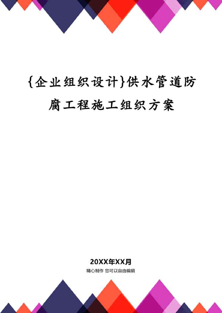 不久前,最新文档《{企业组织设计}供水管道防腐工程施工组织方案》全文正式在本站发布,感兴趣的用户可以下载阅读。 声明:本站所有文章,如无特殊说明或标注,均为本站原创发布。任何个人或组织,在未征得本站同意时,禁止复制、盗用、采集、发布本站内容到任何网站、书籍等各类媒体平台。如若本站内容侵犯了原著者的合法权益,可联系我们进行处理。