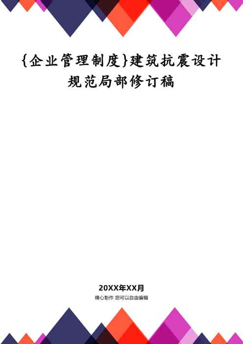 不久前,最新文档《{企业管理制度}建筑抗震设计规范局部修订稿》全文正式在本站发布,感兴趣的用户可以下载阅读。 声明:本站所有文章,如无特殊说明或标注,均为本站原创发布。任何个人或组织,在未征得本站同意时,禁止复制、盗用、采集、发布本站内容到任何网站、书籍等各类媒体平台。如若本站内容侵犯了原著者的合法权益,可联系我们进行处理。