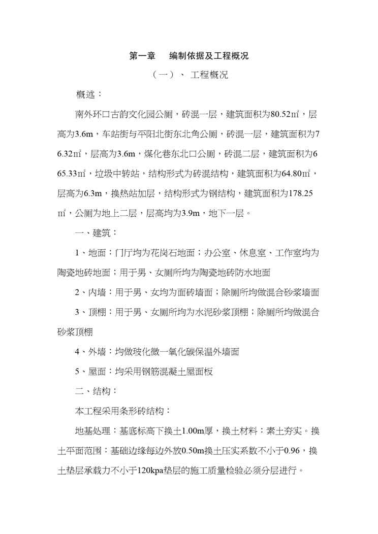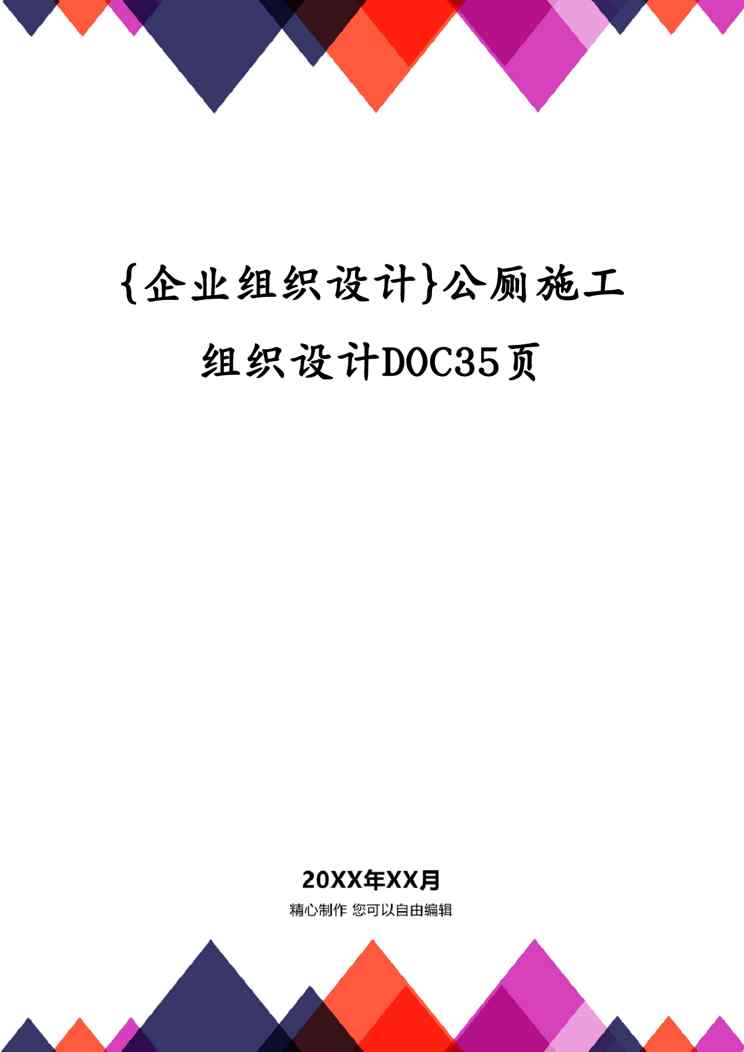 本站资深用户发布了最新的《{企业组织设计}公厕施工组织设计DOC35页》文档,以下内容为预览,详细内容可下载阅读。 声明:本站所有文章,如无特殊说明或标注,均为本站原创发布。任何个人或组织,在未征得本站同意时,禁止复制、盗用、采集、发布本站内容到任何网站、书籍等各类媒体平台。如若本站内容侵犯了原著者的合法权益,可联系我们进行处理。