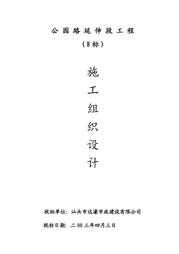 本站资深用户发布了最新的《{企业组织设计}公园路延伸段施工组织设计8标》文档,以下内容为预览,详细内容可下载阅读。 声明:本站所有文章,如无特殊说明或标注,均为本站原创发布。任何个人或组织,在未征得本站同意时,禁止复制、盗用、采集、发布本站内容到任何网站、书籍等各类媒体平台。如若本站内容侵犯了原著者的合法权益,可联系我们进行处理。