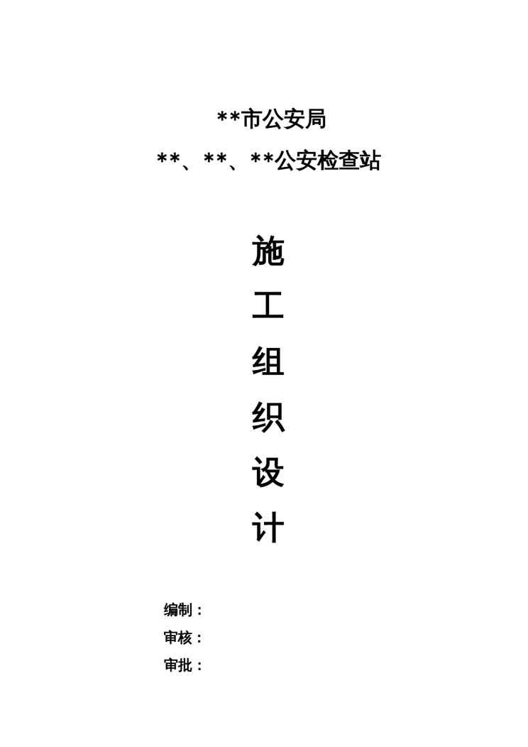 不久前,最新文档《{企业组织设计}公安检查站施工组织设计》全文正式在本站发布,感兴趣的用户可以下载阅读。 声明:本站所有文章,如无特殊说明或标注,均为本站原创发布。任何个人或组织,在未征得本站同意时,禁止复制、盗用、采集、发布本站内容到任何网站、书籍等各类媒体平台。如若本站内容侵犯了原著者的合法权益,可联系我们进行处理。