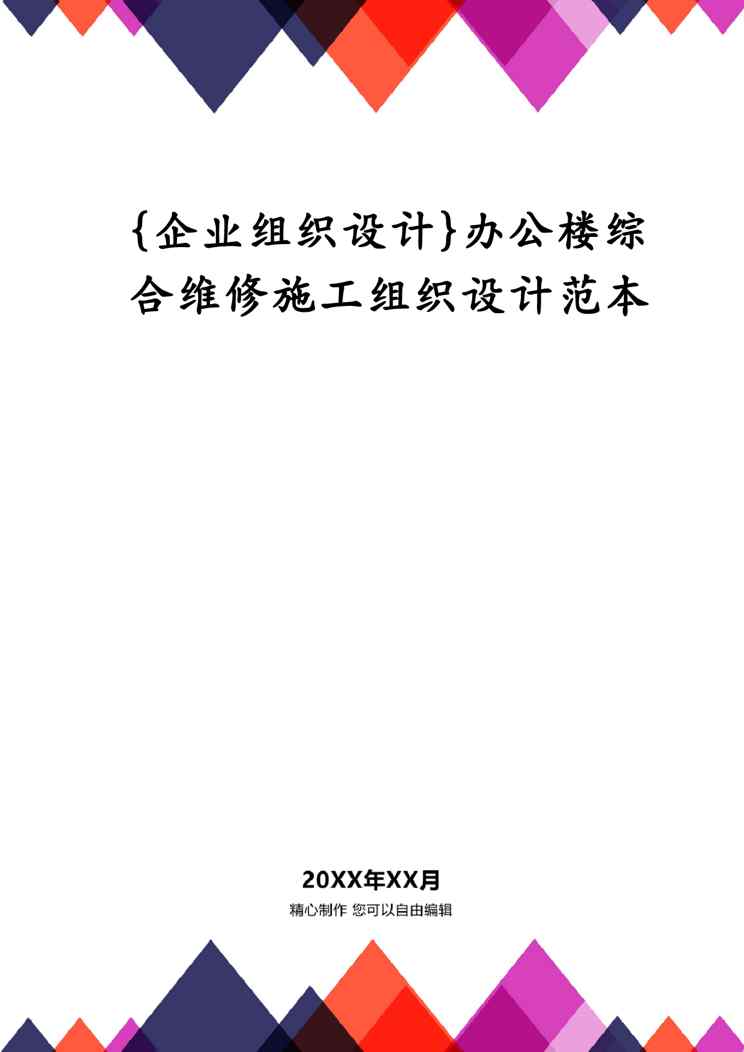 本站正式发布了《{企业组织设计}办公楼综合维修施工组织设计范本》文档,文档详细内容可下载阅读。 声明:本站所有文章,如无特殊说明或标注,均为本站原创发布。任何个人或组织,在未征得本站同意时,禁止复制、盗用、采集、发布本站内容到任何网站、书籍等各类媒体平台。如若本站内容侵犯了原著者的合法权益,可联系我们进行处理。