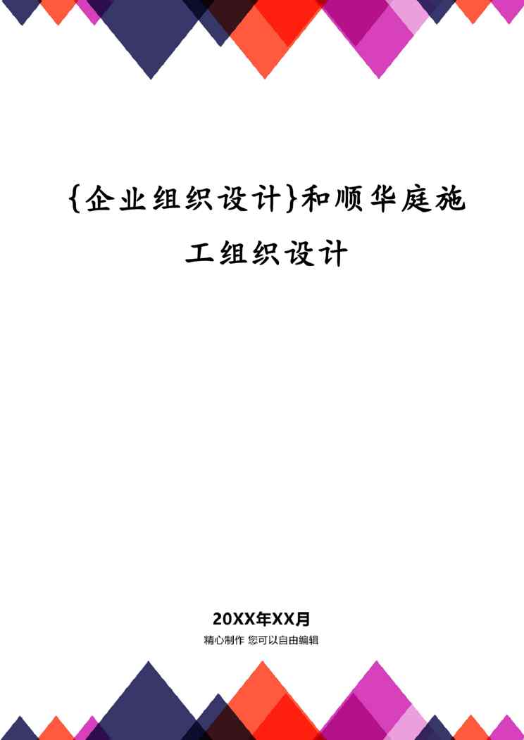 本站正式发布了《{企业组织设计}和顺华庭施工组织设计》文档,文档详细内容可下载阅读。 声明:本站所有文章,如无特殊说明或标注,均为本站原创发布。任何个人或组织,在未征得本站同意时,禁止复制、盗用、采集、发布本站内容到任何网站、书籍等各类媒体平台。如若本站内容侵犯了原著者的合法权益,可联系我们进行处理。
