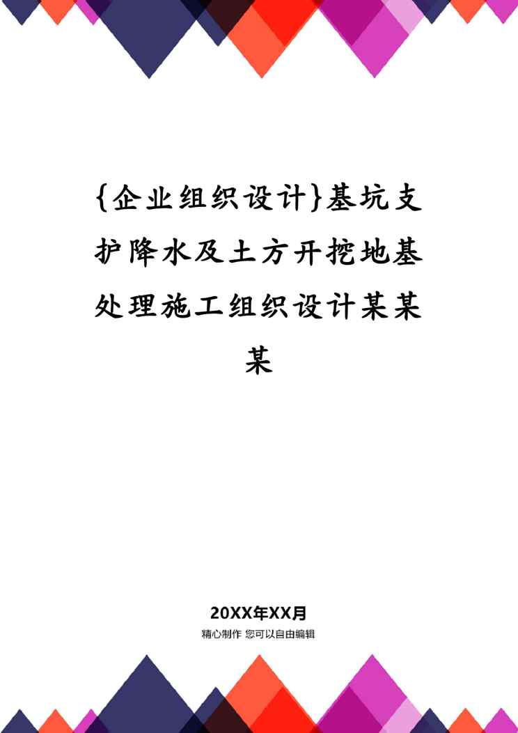 不久前,最新文档《{企业组织设计}基坑支护降水及土方开挖地基处理施工组织设计某某某》全文正式在本站发布,感兴趣的用户可以下载阅读。 声明:本站所有文章,如无特殊说明或标注,均为本站原创发布。任何个人或组织,在未征得本站同意时,禁止复制、盗用、采集、发布本站内容到任何网站、书籍等各类媒体平台。如若本站内容侵犯了原著者的合法权益,可联系我们进行处理。