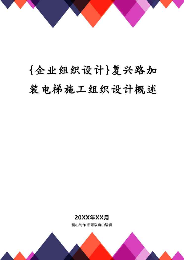 本站资深用户发布了最新的《{企业组织设计}复兴路加装电梯施工组织设计概述》文档,以下内容为预览,详细内容可下载阅读。 声明:本站所有文章,如无特殊说明或标注,均为本站原创发布。任何个人或组织,在未征得本站同意时,禁止复制、盗用、采集、发布本站内容到任何网站、书籍等各类媒体平台。如若本站内容侵犯了原著者的合法权益,可联系我们进行处理。