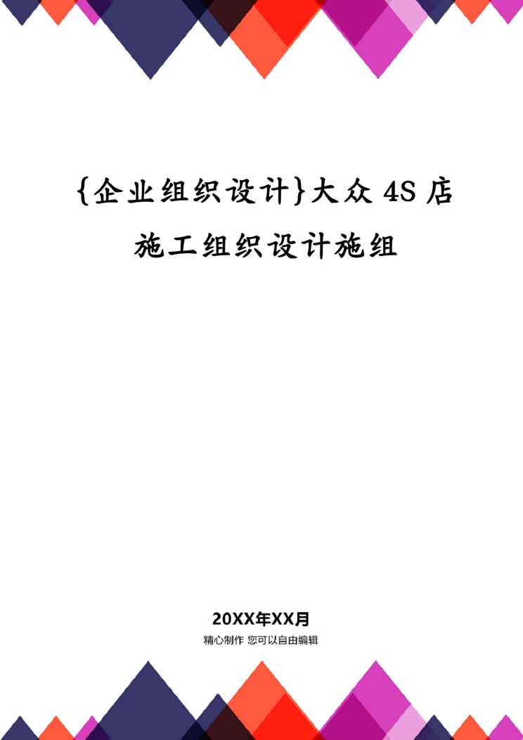本站正式发布了《{企业组织设计}大众4S店施工组织设计施组》文档,文档详细内容可下载阅读。 声明:本站所有文章,如无特殊说明或标注,均为本站原创发布。任何个人或组织,在未征得本站同意时,禁止复制、盗用、采集、发布本站内容到任何网站、书籍等各类媒体平台。如若本站内容侵犯了原著者的合法权益,可联系我们进行处理。