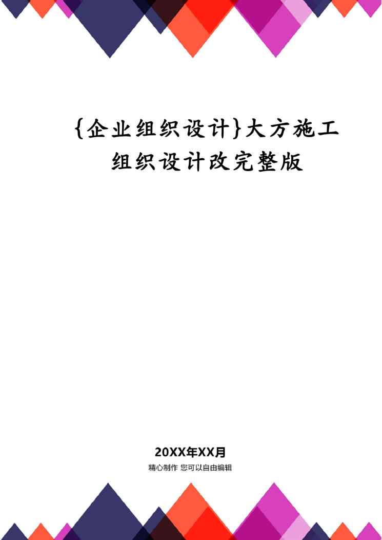 本站正式发布了《{企业组织设计}大方施工组织设计改完整版》文档,文档详细内容可下载阅读。 声明:本站所有文章,如无特殊说明或标注,均为本站原创发布。任何个人或组织,在未征得本站同意时,禁止复制、盗用、采集、发布本站内容到任何网站、书籍等各类媒体平台。如若本站内容侵犯了原著者的合法权益,可联系我们进行处理。
