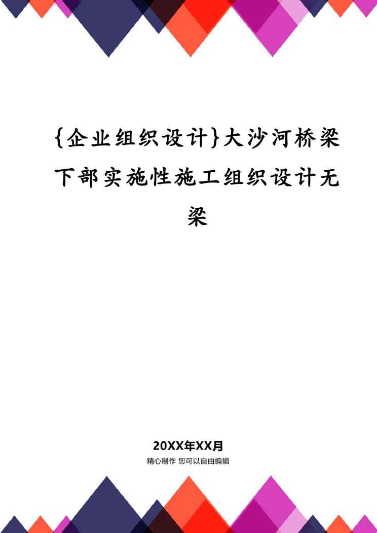本站正式发布了《{企业组织设计}大沙河桥梁下部实施性施工组织设计无梁》文档,文档详细内容可下载阅读。 声明:本站所有文章,如无特殊说明或标注,均为本站原创发布。任何个人或组织,在未征得本站同意时,禁止复制、盗用、采集、发布本站内容到任何网站、书籍等各类媒体平台。如若本站内容侵犯了原著者的合法权益,可联系我们进行处理。