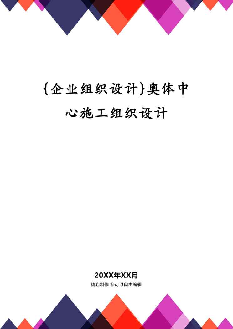 本站资深用户发布了最新的《{企业组织设计}奥体中心施工组织设计》文档,以下内容为预览,详细内容可下载阅读。 声明:本站所有文章,如无特殊说明或标注,均为本站原创发布。任何个人或组织,在未征得本站同意时,禁止复制、盗用、采集、发布本站内容到任何网站、书籍等各类媒体平台。如若本站内容侵犯了原著者的合法权益,可联系我们进行处理。