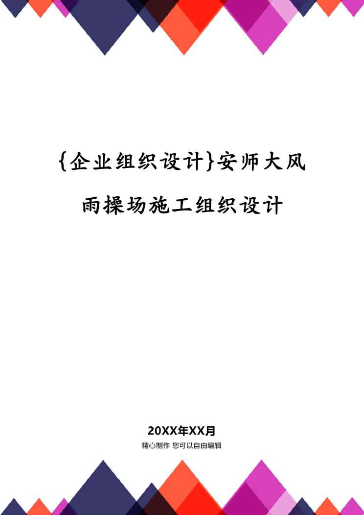 本站正式发布了《{企业组织设计}安师大风雨操场施工组织设计》文档,文档详细内容可下载阅读。 声明:本站所有文章,如无特殊说明或标注,均为本站原创发布。任何个人或组织,在未征得本站同意时,禁止复制、盗用、采集、发布本站内容到任何网站、书籍等各类媒体平台。如若本站内容侵犯了原著者的合法权益,可联系我们进行处理。