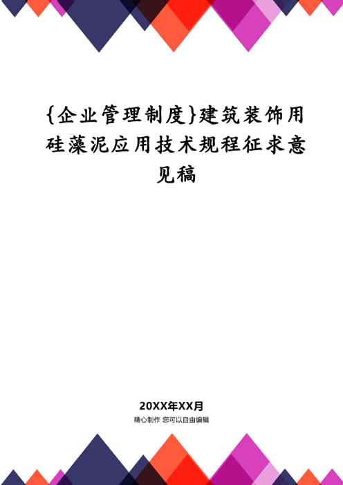 {企业管理制度}建筑装饰用硅藻泥应用技术规程征求意见稿{企业管理制度}建筑装饰用硅藻泥应用技术规程征求意见稿{企业管理制度}建筑装饰用硅藻泥应用技术规程征求意见稿