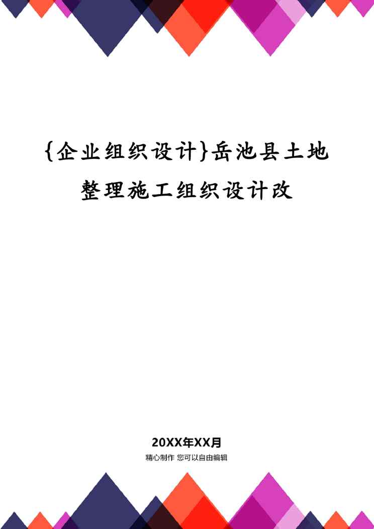 不久前,最新文档《{企业组织设计}岳池县土地整理施工组织设计改》全文正式在本站发布,感兴趣的用户可以下载阅读。 声明:本站所有文章,如无特殊说明或标注,均为本站原创发布。任何个人或组织,在未征得本站同意时,禁止复制、盗用、采集、发布本站内容到任何网站、书籍等各类媒体平台。如若本站内容侵犯了原著者的合法权益,可联系我们进行处理。