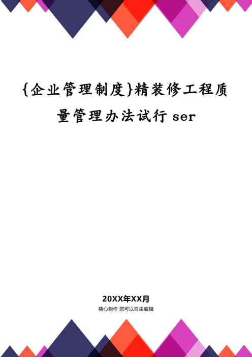 不久前,最新文档《{企业管理制度}精装修工程质量管理办法试行ser》全文正式在本站发布,感兴趣的用户可以下载阅读。 声明:本站所有文章,如无特殊说明或标注,均为本站原创发布。任何个人或组织,在未征得本站同意时,禁止复制、盗用、采集、发布本站内容到任何网站、书籍等各类媒体平台。如若本站内容侵犯了原著者的合法权益,可联系我们进行处理。